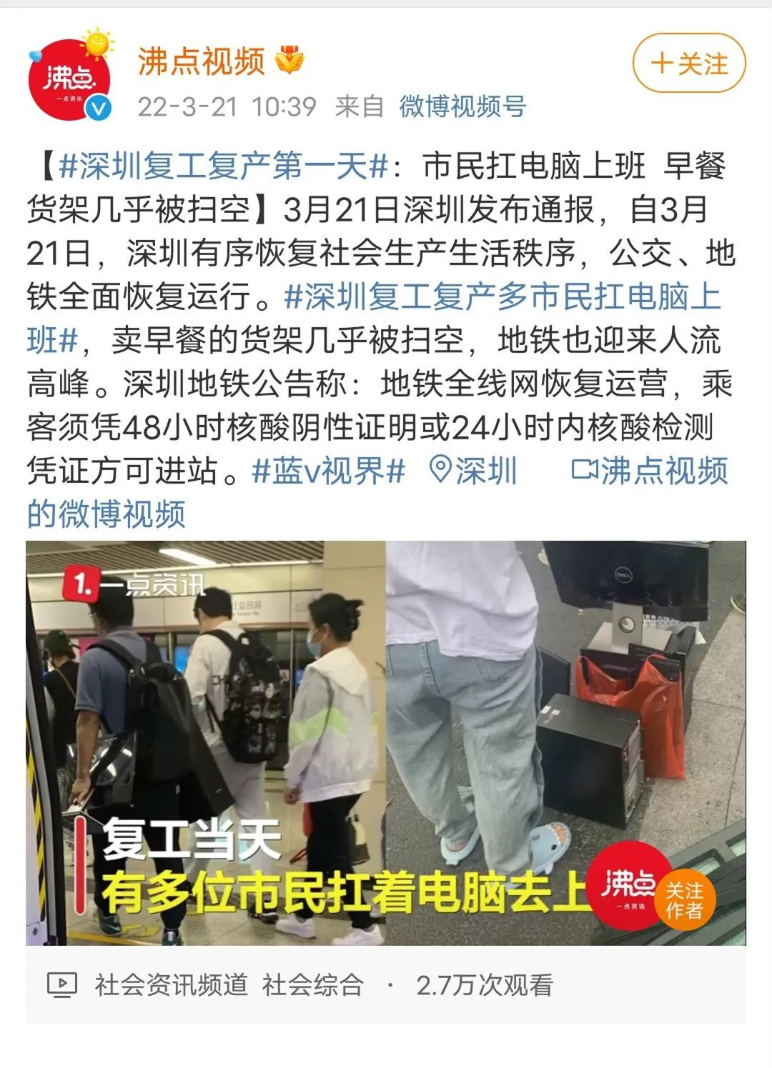 深圳人扛着电脑一起复工了