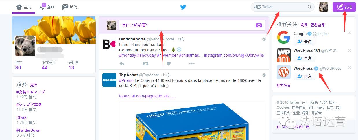 只能发布推文,而且有字数限制的,所以推特更适合于短文营销。您可以简单的描述您的产品,用吸引人的话语。如果一切设置好,就可以直接发起广告