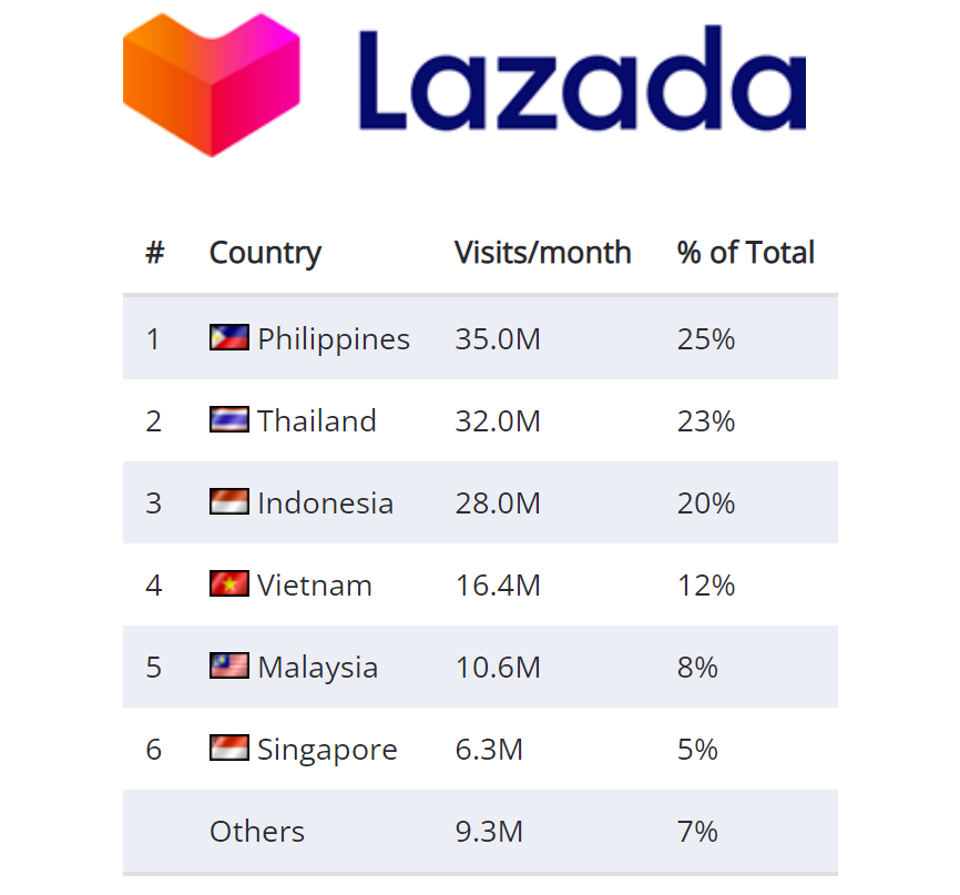 创立于2012年的Lazada紧随其后,月访问量达到1.28亿。与Shopee一样,Lazada的业务范围也广布整个东南亚,总部位于新加坡,但泰国和菲律宾是Lazada最主要的市场,其次才是印度尼西亚。 因为薄弱的物流减缓了东南亚电子商务的迅速发展,Lazada还对仓库和运输网络进行了大量投资。 Lazada和Shopee之间有许多相似之处,比如跨区域模式、相似的流量水平以及对年度销售活动日的关注,但Lazada的运营模式更像亚马逊。Lazada的平台分为三个部分:
