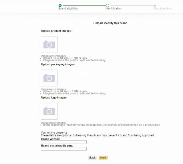 ►依旧需要带有logo的产品图片和外包装图片另外需要一张logo的单独图片。除了提交品牌网站链接外,还可以提交社交媒体的主页