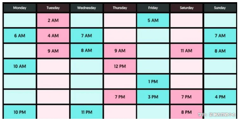 为此,Influencer Marketing Hub 进行了一项研究,他们分析了全球 100,000 多个 TikTok 帖子,结果显示在美国东部标准时间周二上午 9 点、美国东部时间周四午夜和美国东部标准时间周五上午 5 点这三个时间段,TikTok受众的参与度特别高。