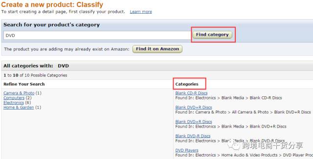 1、在Add a new product页面搜索框中输入要销售商品的标题或者UPC,EAN,ASIN,点击搜索,搜索出商品以后确认UPC跟您的商品外包装上的UPC完全一致后点击Sell yours按钮,进行添加。