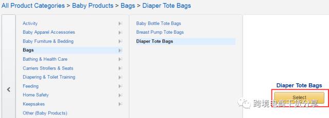 3.在列表中选择商品详细品类,在搜索框里输入关键字可以搜索品类,点击Select确认品类。