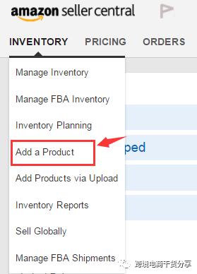 1.进入卖家后台,点击屏幕左上角Inventory下面的Add a product