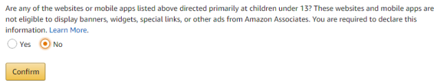 这里选择,No,允许13岁以下的人访问