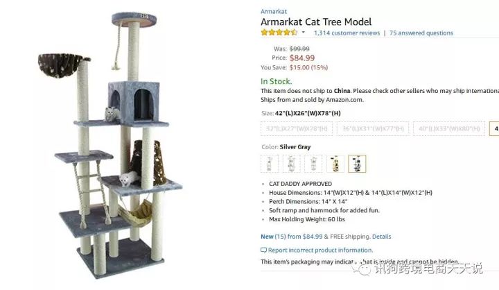 今天的第一篇公众号文章(2017年11月15日)给大家详细的分析了猫爬架产品巨大的市场。