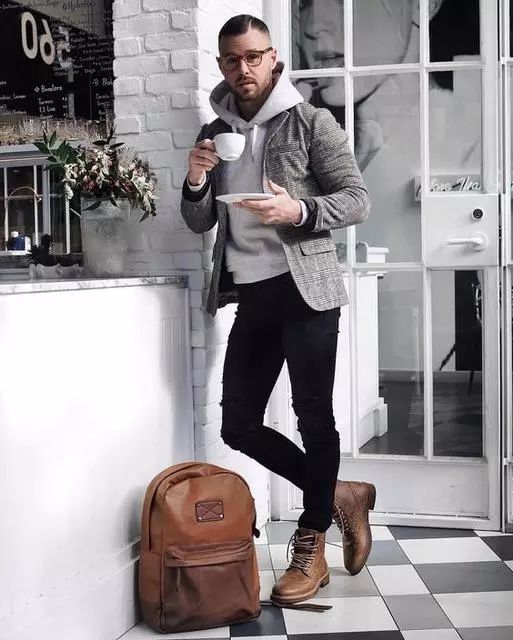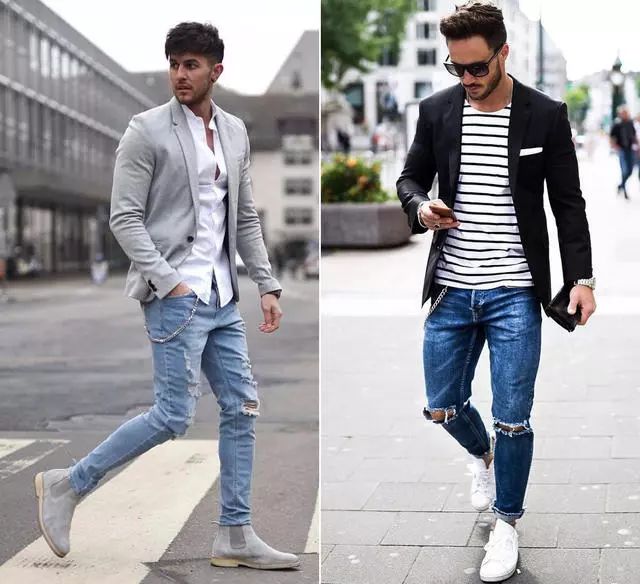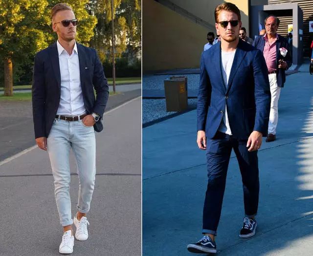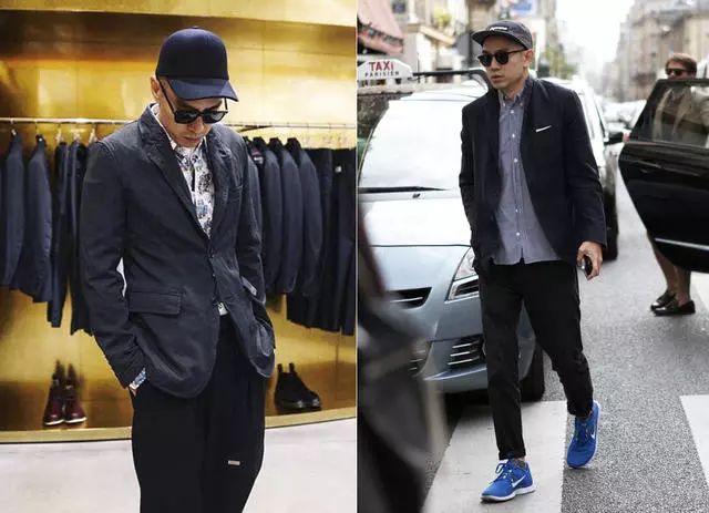 美式混搭风格相较于前面两类,是最随兴、无拘束的style,任何你想得到的单品,如牛仔裤、帽T、运动裤,只要和休闲西装搭起来适合,就没有什么不可以的。而「球鞋」这个过去看似与西装扯不上关系的鞋款,早已被大家接受,许多时尚潮人都会运用球鞋搭配西装,营造一种极致混搭的潮流感。