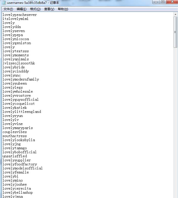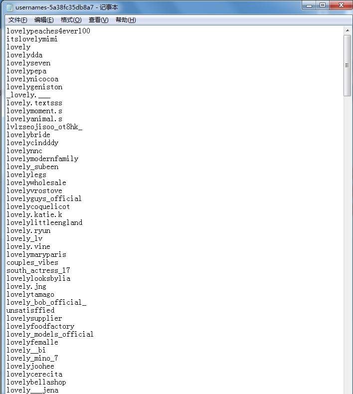 如下图,我在pinterest上抓取了以lovely为关键词的用户名,