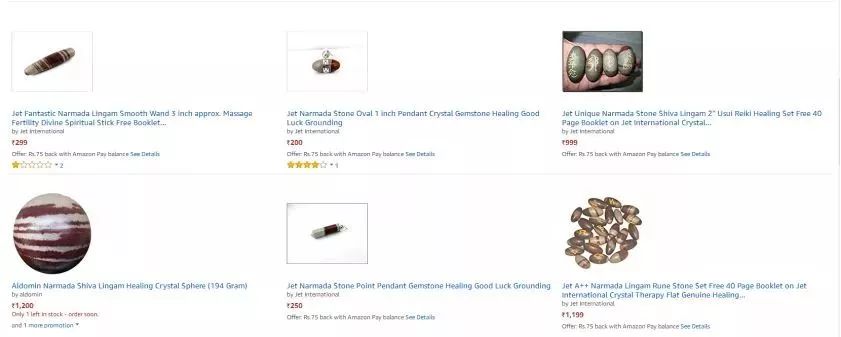 在印度,Narmada石头同样在网上热售,这些石头几千年来被神圣的印度教文化所推崇, 用于庙宇和祭坛。