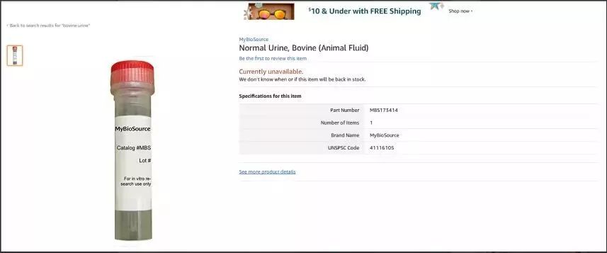 在亚马逊上平台上,牛尿也是一瓶难求,有些显示已下架!有些显示不无法销售!