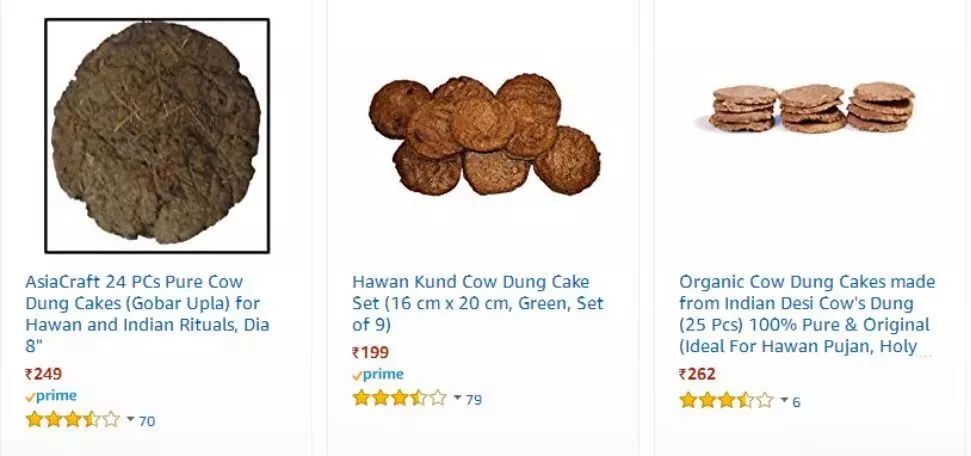 这种牛粪饼被印度的一些商家包装精美的在网络上售卖,在亚马逊上价格大概为100-400卢比一包,每包的分量大概为200克左右,销量火爆,不可思议的是竟然还全球包邮。