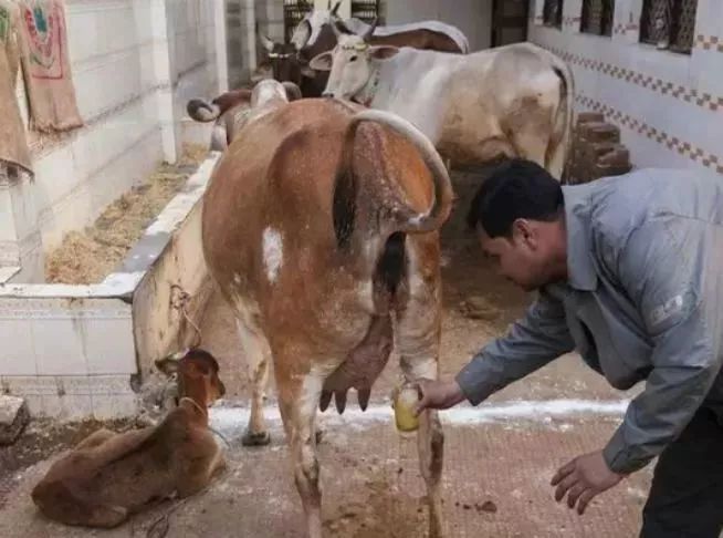牛尿销售这么好,据说是因为印度人相信牛尿能够强生健体,延年益寿!