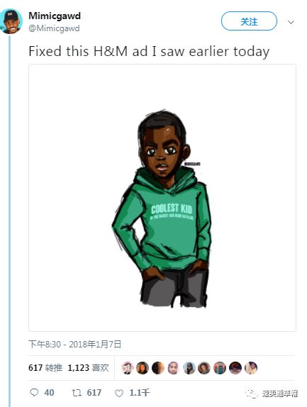 另一位推友Mimicgawd发布了“修改版”的广告,并将标语改成“Coolest Kid in the racist ass H&M catalo”。
