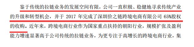 鉴于传统拉链业务的发展空间有限,浔兴股份表示,公司一直积极、稳健地寻求传统产业的升级和转型机会,并于2017 年完成了深圳价之链跨境电商有限公司 65%股权的收购。现公司为更专注于高增长的跨境电商行业,强化公司竞争力,拟出售与拉链业务相关的、或基于拉链业务的运营而产生的所有资产和负债,即:在本次重大资产重组中,新增重大资产出售事项。