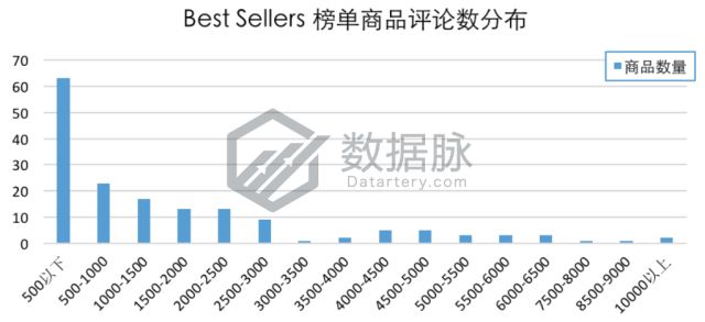 在这七天中登榜Clothing, Shoes & Jewelry品类Best Sellers榜单的商品中,单个商品拥有的最大评论数为10320.0,最小评论数为1.0条,平均评论数2058.62条,评论平均星级4.29星。骆探长 (shujumai.com)发现,其中该周评论数在500条以下的上榜商品较多,占比达33.87%,另有12.37%的上榜商品评论数在500条至 1000条之间。此外,上周有2款上榜商品的评论数超过10000条。相较于前几期分析,上周进榜Best Sellers榜单的商品的整体平均评论数出现了回落,低评论新品上榜机会有所增加。