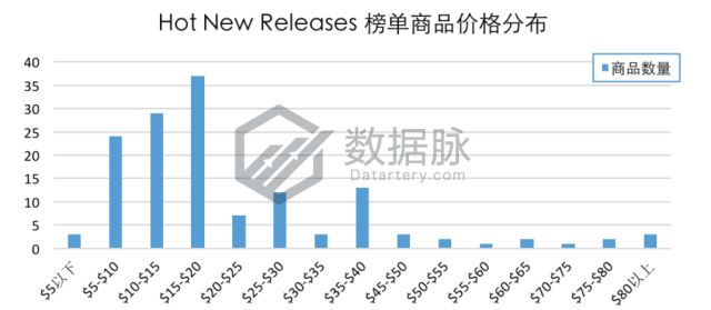 1月4日至10日Clothing, Shoes & Jewelry品类Hot New Releases榜单商品最高价$159.99,最低价$1.0,平均价格$24.31。骆探长(shujumai.com)发现,其中定价于$15.00-$20.00 价格段的商品数量较多,占上榜商品总数的22.56%;另有17.68%的上榜商品位于$10.00-$15.00价格段;同时相比于前几期分析,这七天中定价与$35.00-$40.00价格段的商品数有所增加,占比达7.39%。此外,有3款上榜商品的价格超过了$80.00,占上榜商品总数的1.83%。