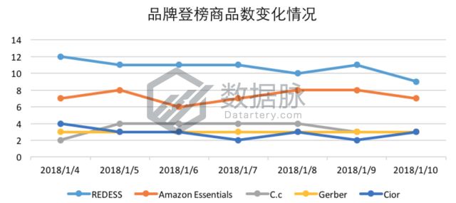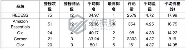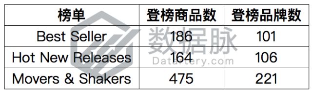 根据上周Movers & Shakers榜单上各个品牌下商品的登榜次数,我们对登榜的品牌进行了排序,其中排名靠前的五个品牌如下所示: