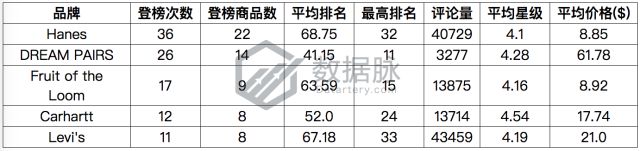 根据上周Hot New Releases榜单上各个品牌下商品的登榜次数,我们对登榜的品牌进行了排序,其中排名靠前的五个品牌如下所示: