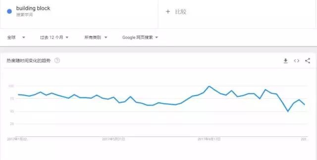 Building Block积木这个词在谷歌趋势上的搜索热度一直高居不下,远超其他玩具产品,而且基本没有低潮期。