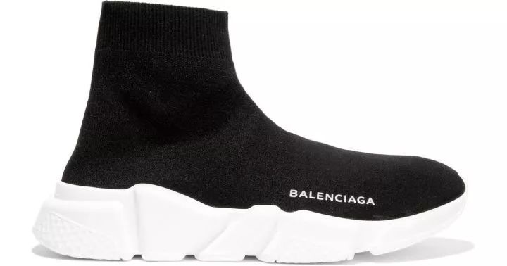 魔术贴和松紧带、制作材料混用,装饰杂乱无章,以及撞色是关键,这一运动鞋趋势源于自巴黎世家的Triples运动鞋,并进一步被Yeezy的Desert Rat 500推崇,后者将在2018年非常热销。