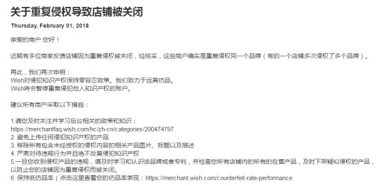 1、Wish官方回应“侵权”被关店卖家:经核实,确实存在侵权行为