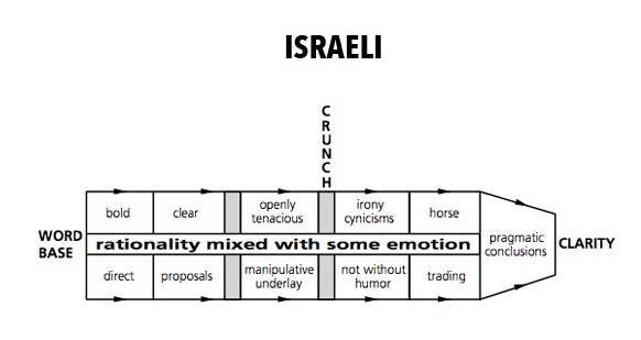 以色列人:木讷又直接,在大多数问题上很理性,也会情绪化。谈判时很精明,总能以幽默的方式反驳对方,最终获得自己的利益。