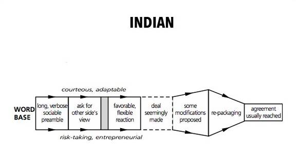 印度人:不直接切入正题,绕个大圈子后询问客户的意见并给出“官方回应”,达成初期协定后再继续重新提出方案计划。