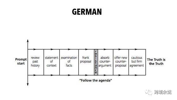 德国人:严谨规范,除了看产品外,会很坦率地给出提案,再不断的“交涉”后达成共识。典型的“按流程”办事,因此和德国人做交易,最好用产品和服务说话。