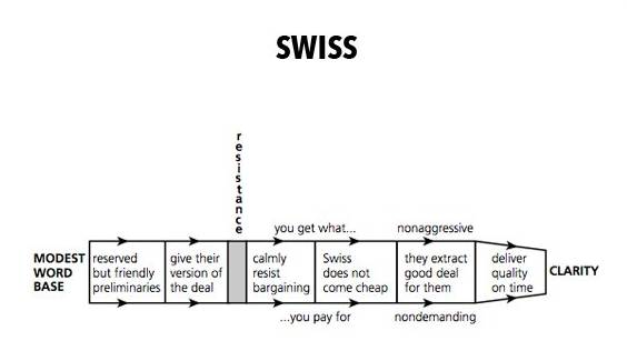 瑞士人:保守又友善,直接提出自己的看法以及“你能得到什么,你需要付出什么”。他们不爱便宜货,不爱讨价还价,会直接告诉客户自己产品及服务的质量和价值非常高。