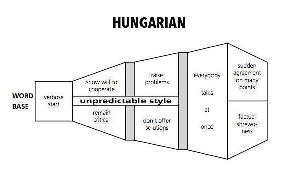 匈牙利人:行事“飘忽”,通常会给客户合作的意愿,但又有所保留,会提出问题不想解决办法。直到最后才会给客户答复,非常精明。