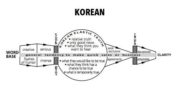 韩国人:喜欢尽快做成交易。他们只告诉客户某些事实,喜欢签独家协议,看似可接受,实际有些虚伪。