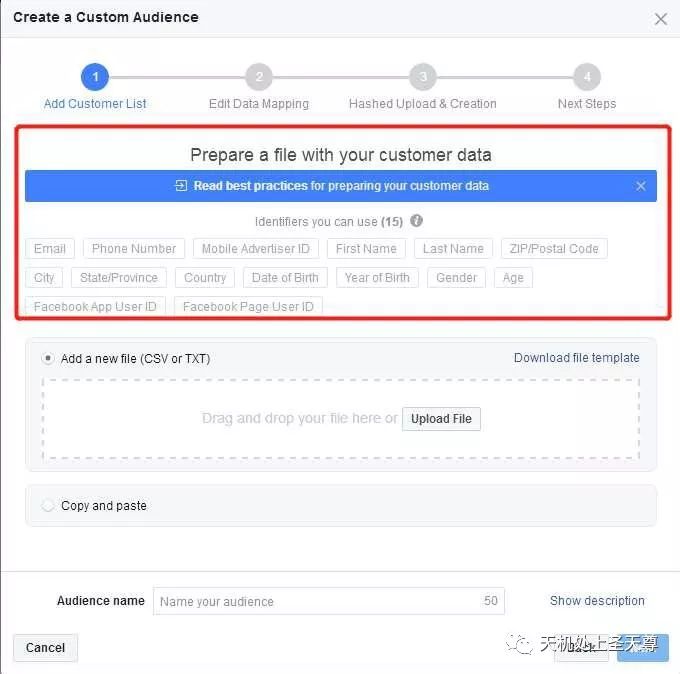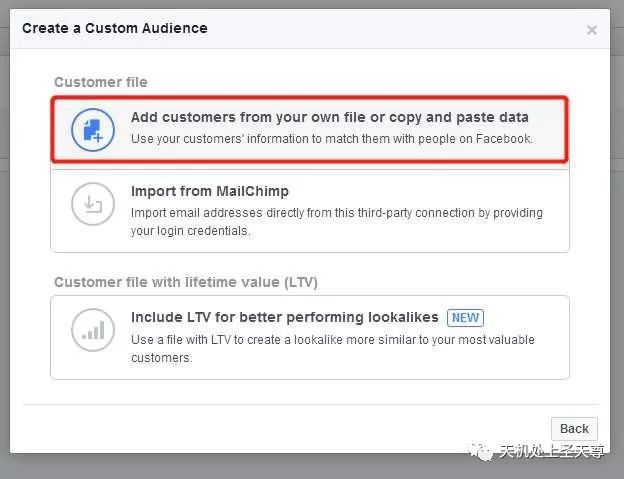 4、选择“Add customers from your own file or copy and paste data”(从个人文件添加客户或复制/粘贴数据)