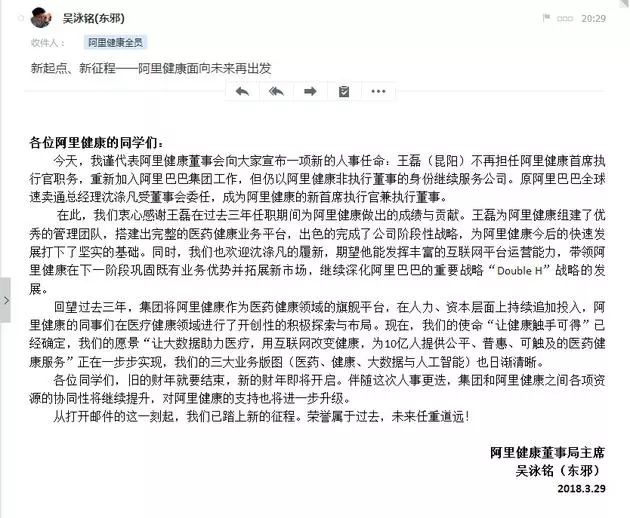 阿里健康原首席执行官王磊不再担任CEO职务,重新加入阿里健康的控股股东阿里巴巴集团工作,但仍会以非执行董事的身份继续服务阿里健康。