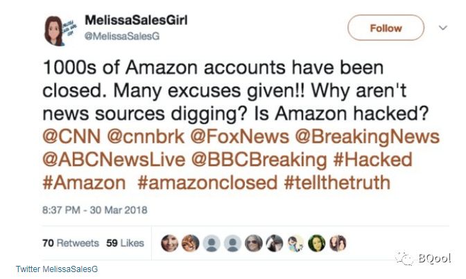 4 / 5 亚马逊关闭上百个 亚马逊买家账号 ,身为卖家,您有察觉到哪些异状吗?最近 Twitter 上面有一个很流行的 Tag(标签) #amazonclosed