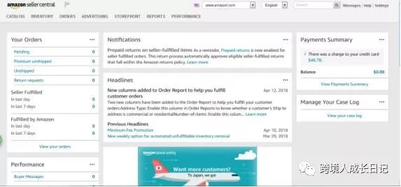 业绩通知:此处查看平台给卖家发送的所有重要信息;