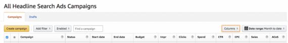 Seller Central 的 Headline Search Ads 在管理广告绩效方面做的很好,卖家可以依照自己的需求来调整筛选器,直接在亚马逊后台分析广告绩效,也可以调整广告出价赖评估关键词效果。
