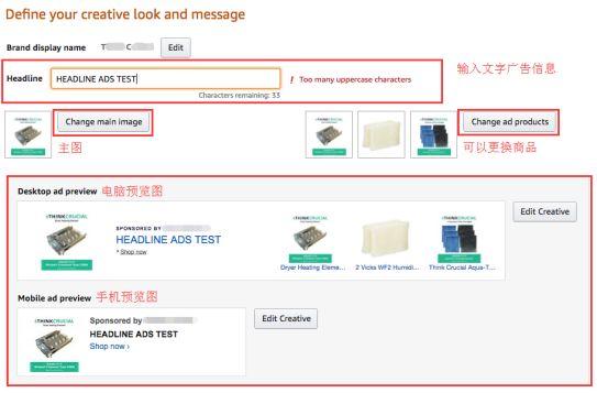 2017年8月,亚马逊对普通卖家(品牌备案)开放了头条广告版块。