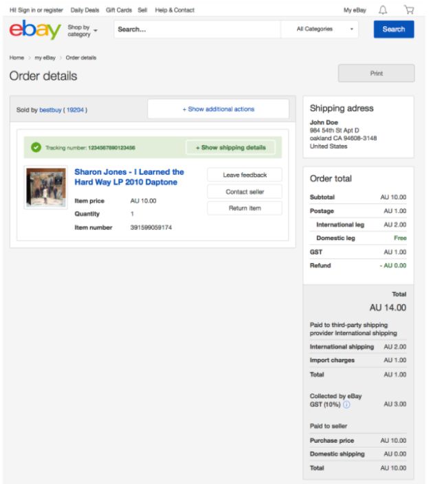 同时该法规也不会对卖家朋友们的收款造成任何影响哦,卖家依然会收到买家支付的订单售价(含运费)全款; 而买家支付的商品及服务税(GST)将由eBay代收后缴纳给澳大利亚政府。