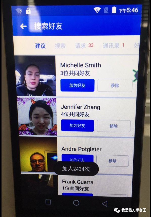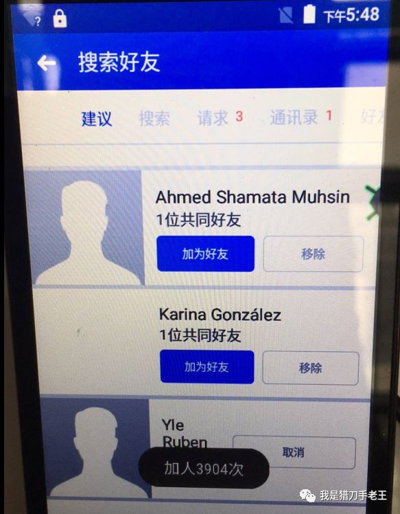 回头来说,请求这个事。其实原理也很简单,如果你有多的好友需求,facebook自动会把数量给你放大,如果你根本没有需求,facebook就不会增加你的数量,所以也是一个循序的过程。我每天5000个好友请求,那可能因为我本身好友就多,我只是在不停的删除我的好友。我需要新的朋友,这是一个正常的需求。