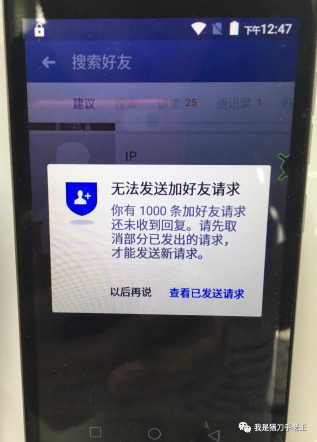 前天在朋友圈发了这张图片,得到很多人的回复,说的确是这样的,和网上许多文章宣称的一样,超过1000个好友请求没有回复,你就不能再给别人发送好友请求了。