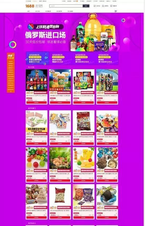 世界杯期间,1688俄罗斯国家馆正式上线,这是俄罗斯政府指定重要对华出口食品贸易协会(俄罗斯食品生产者与供应者协会上海代表处)与1688进口市场联合上线的采销平台。