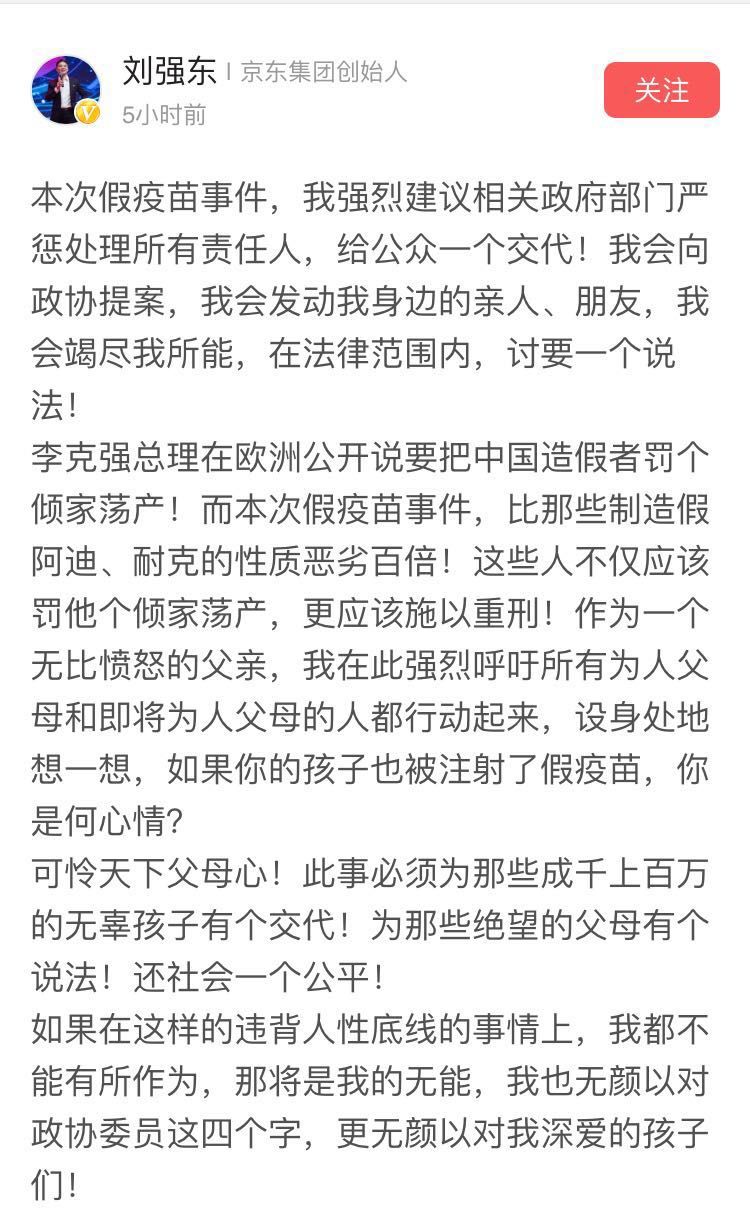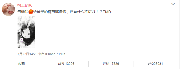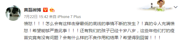 疫苗事件牵动着大家的心,业界有影响力的大V、明星也纷纷出面声援: