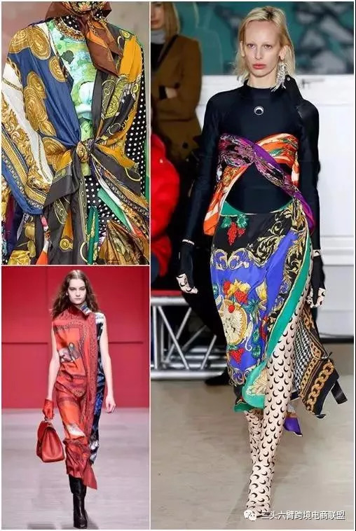 不论是炙手可热的新兴品牌Richard Quinn还是老品牌,都在跟随一个趋势:围巾印花,它们不仅将围巾印花应用于服装上,还直接将其大面积应用于丝质连衣裙、上衣和头巾中,给秋冬服装带来了一丝轻盈感。