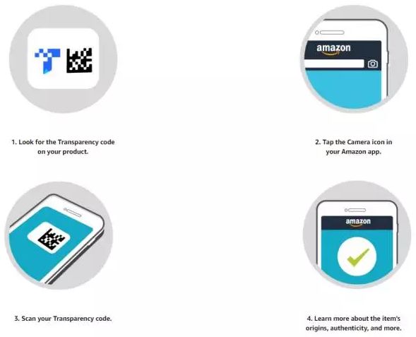 用于被亚马逊APP(已经支持安卓和苹果)扫描以及识别。如果买家下载了亚马逊新的Transparency app中的相机扫描产品外包装上的条形码,马上就能知道产品的真实性、从生产到销售的整个过程,还会有生产的日期、地点、有效期、原材料等其他更多的信息。