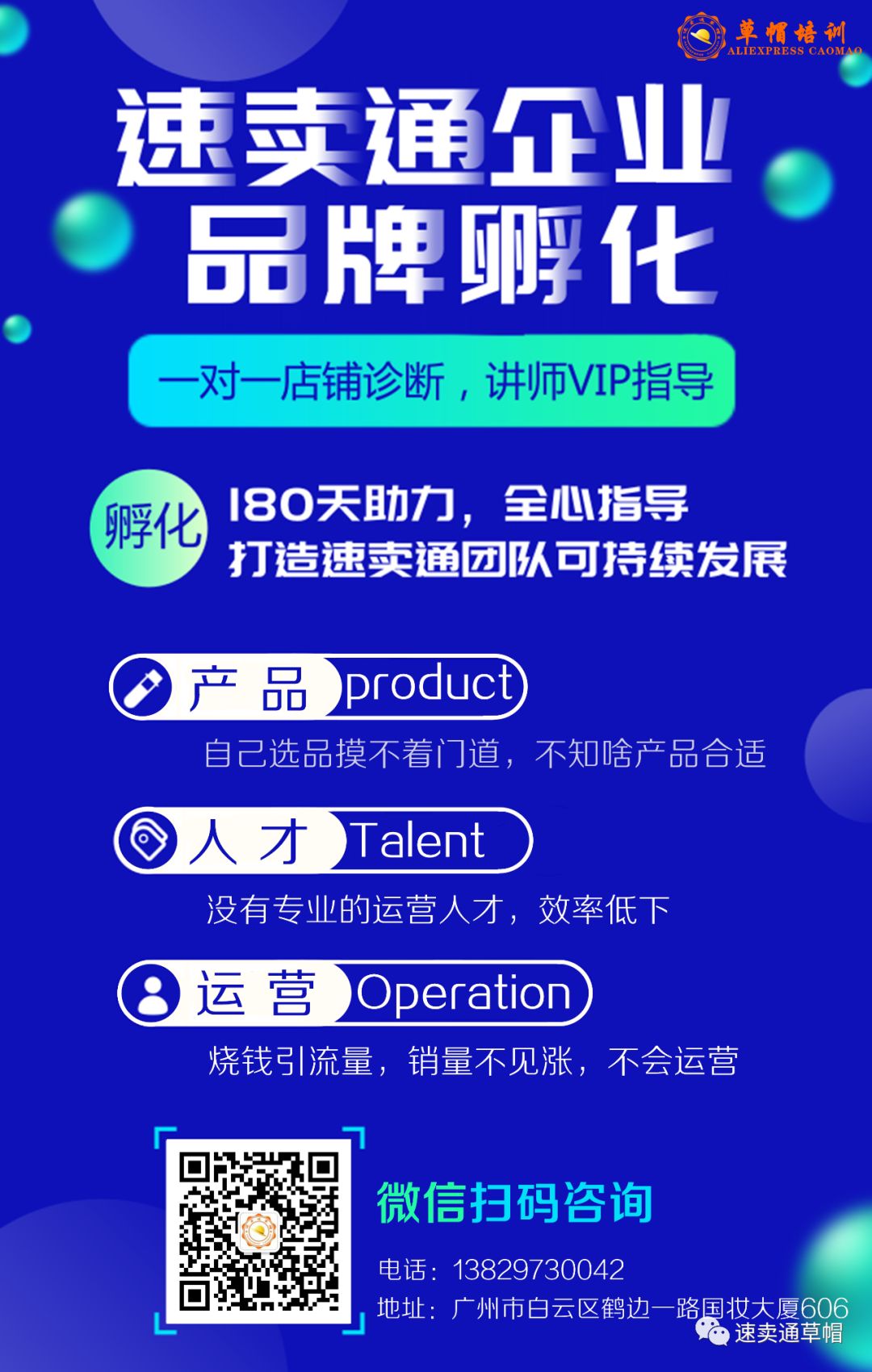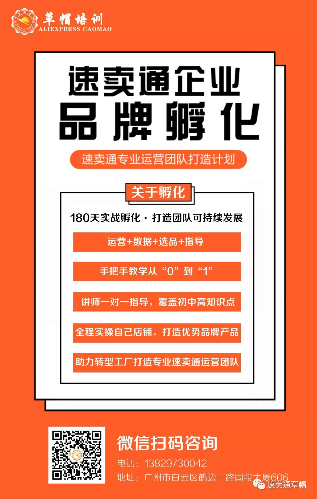 下面草帽推出了速卖通企业品牌孵化,我们将助力辅导180天,主要针对工厂品牌孵化型,讲师vip全心指导,赠送草帽三大专业运营课程,打造速卖通团队可持续发展!