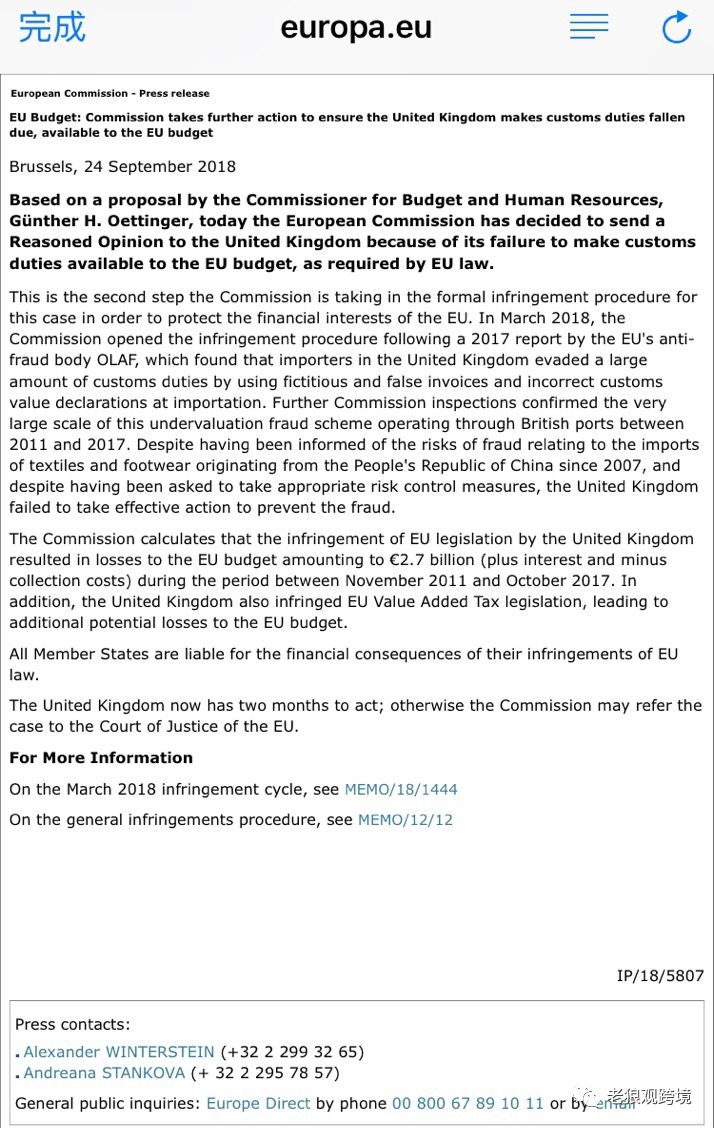 官司起源于今年的三月,当时老狼听说开出的罚单数量是22亿,随之英国海关立刻收紧了申报价值虚报的控制。自夸一下,我也第一时间在朋友圈和公众号里分享了这一消息。