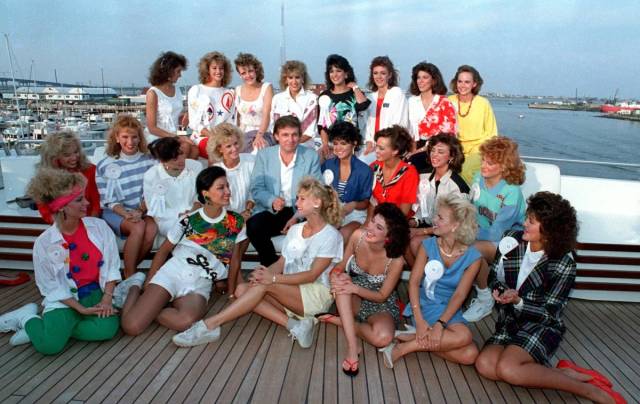 1988年9月大西洋城,特朗普在自己的游艇上,与美国小姐参赛佳丽们合影。这里差不多聚集了当年全部参赛佳丽的半数。特朗普热爱年轻美女,他本人正是这项选美比赛的主席。