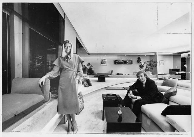 1979年,特朗普与第一任妻子伊凡娜在纽约曼哈顿寓所的客厅中。