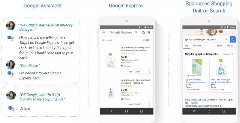 卖家可以通过Google搜索、Google Express以及Google Assistant等平台,向消费者展示产品信息。
