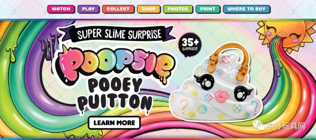 MGA 总部位于加州范内斯(Van Nuys),Pooey Puitton 是其2018年推出的 Poopsie slime Surprise 系列产品中的一款,也是该公司的畅销新玩具之一。Pooey Puitton 里有“黏液粉”,加水后会变幻出不同颜色,变成“彩虹便便”。